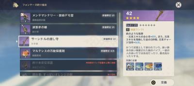 稲妻の釣り武器の「漁獲」は香菱、ロサリア、雷電あたりの元素爆発でダメージ出すタイプのキャラを育てるなら取りに行った方がいい強武器