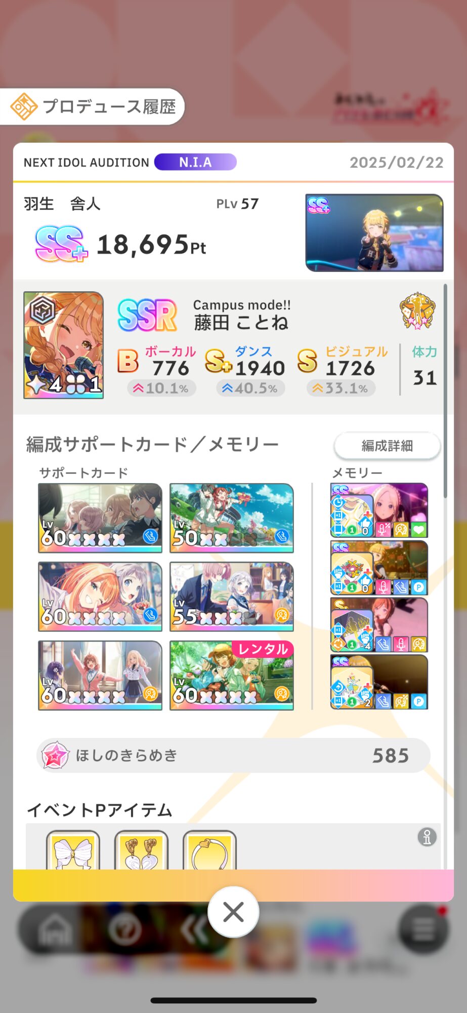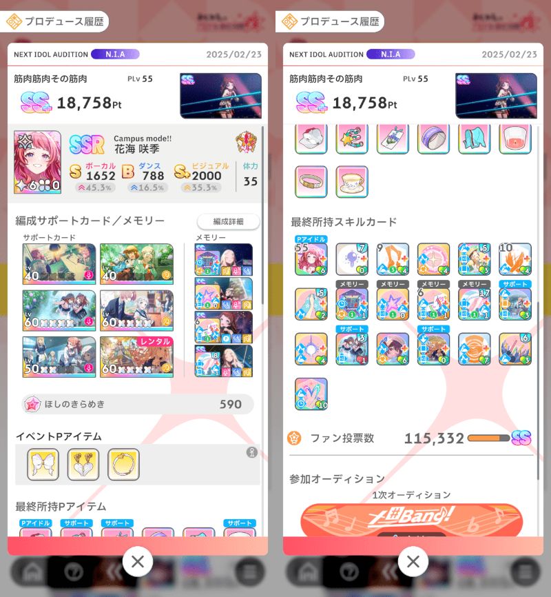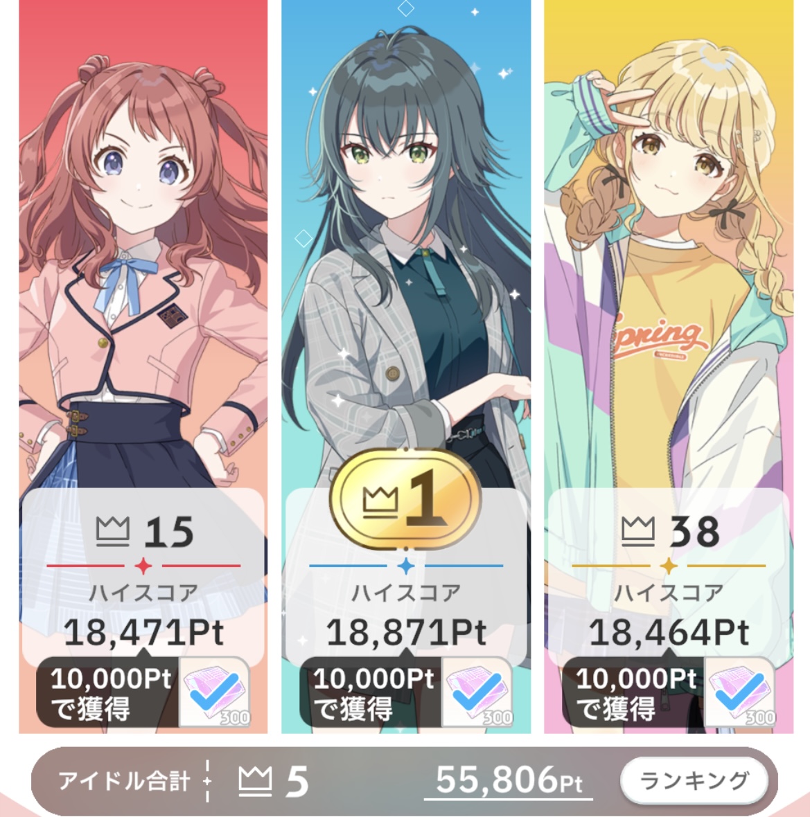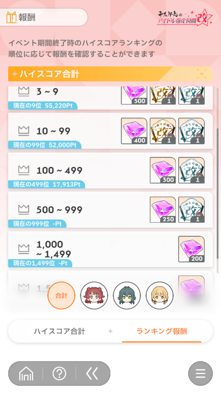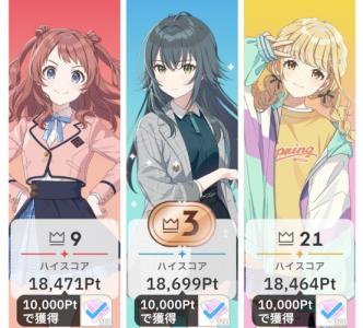 土日乗り越えたらそんなに順位変わらないと思う。長期休みの時期でもないしプロデュースは一日に出来て数回だからね。そのうち最高評価点更新レベルの育成できるのは一回あれば良い方という感覚