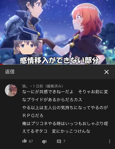 「あっ 主人公愚弄に反応した やっぱ自己投影してると腹立つんやな」とか気に入らないと何でも自己投影にしてくる蛆虫がそこそこいることや - 151二次元好きの匿名さん25/02/26(水) 10:25:21