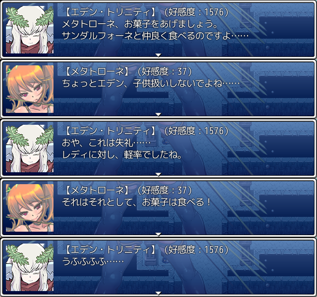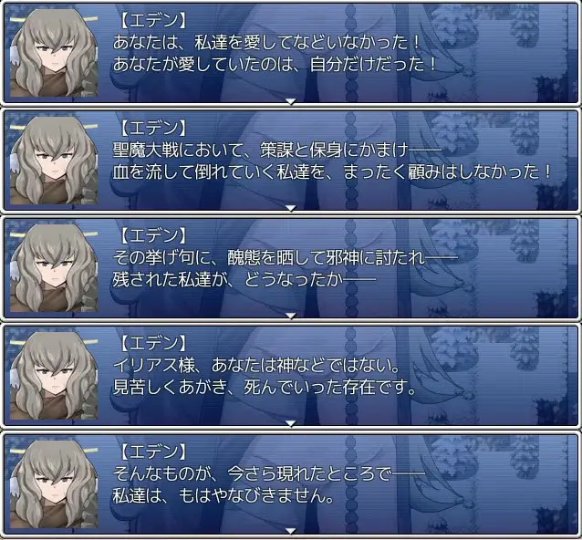 実際三人の熾天使(くえ書き文字)はミカエラとルシフィナがイリアスの分身だからイリアスの持っている神の精神に近いのに対してエデンは故意に穏やかに作ったから割と世俗的なのだと考えられる