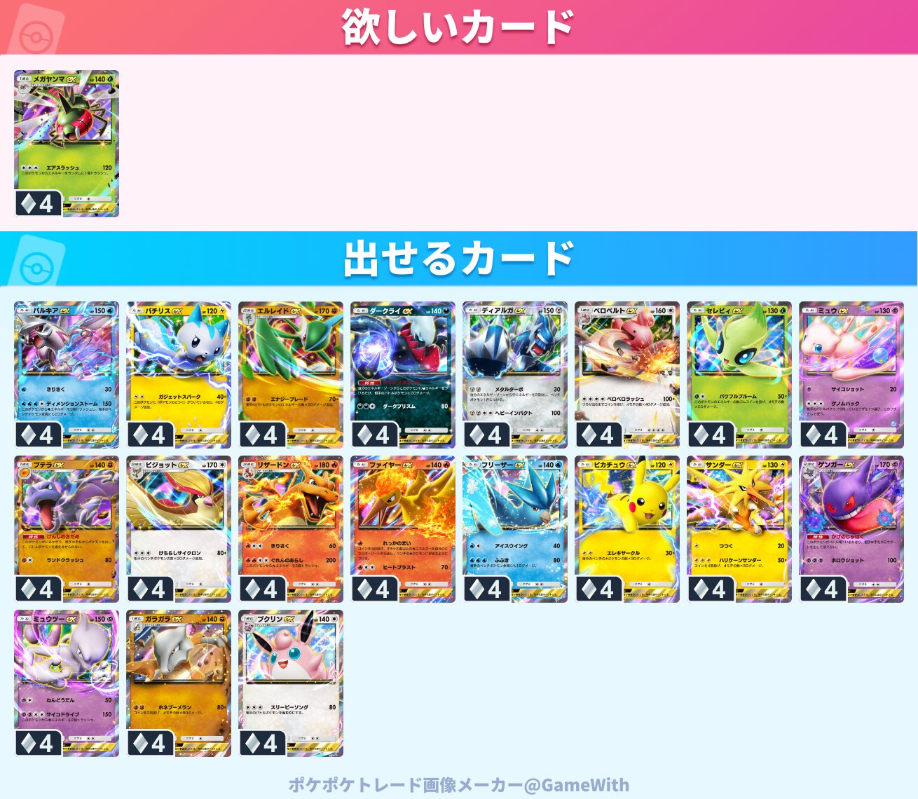 出)♢4ディアルガEX、エルレイドEX、フリーザーEX、ピカチュウEX、サンダーEX