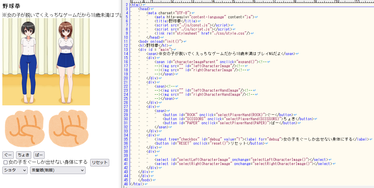 ただ、今回は野球拳scriptの話なのでcssの話は詳しくしません