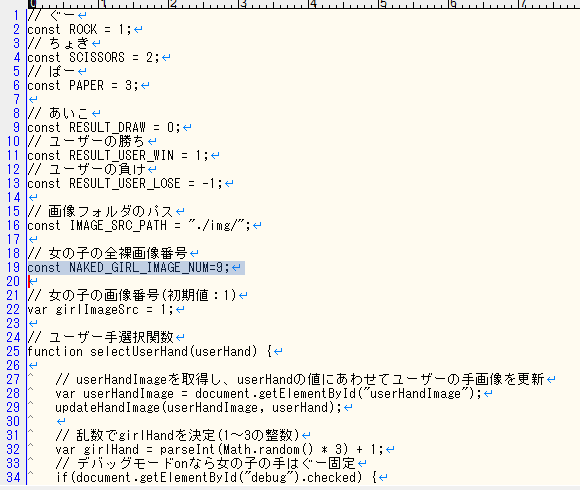 ・25行目に女の子の手をランダムで決定する処理を追加(仕様3)