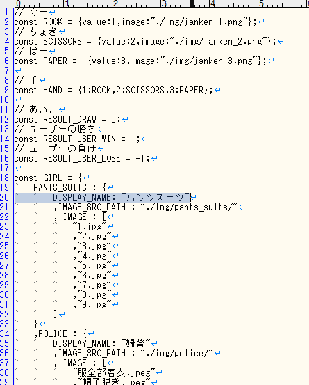 ・8-13行目にじゃんけん結果の定数を追加