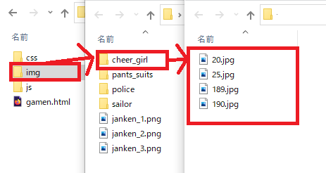 6.勝敗の判定結果に応じて女の子の画像を以下の通り更新する
