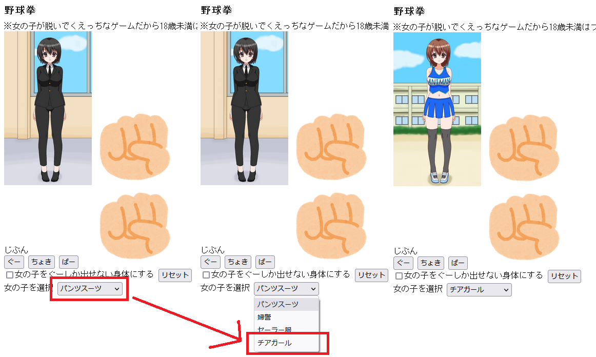 7.女の子が脱げなくなったら野球拳終了(プレイヤーが手を選択できないようにする)