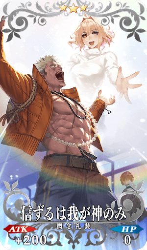 礼装はほとんど入手したし、クリストはもらった呼符使ったら一発目で来た。なんなんですかねあの礼装。イケメンすぎて腹立つし、かっこよすぎるのやめて欲しいわ。