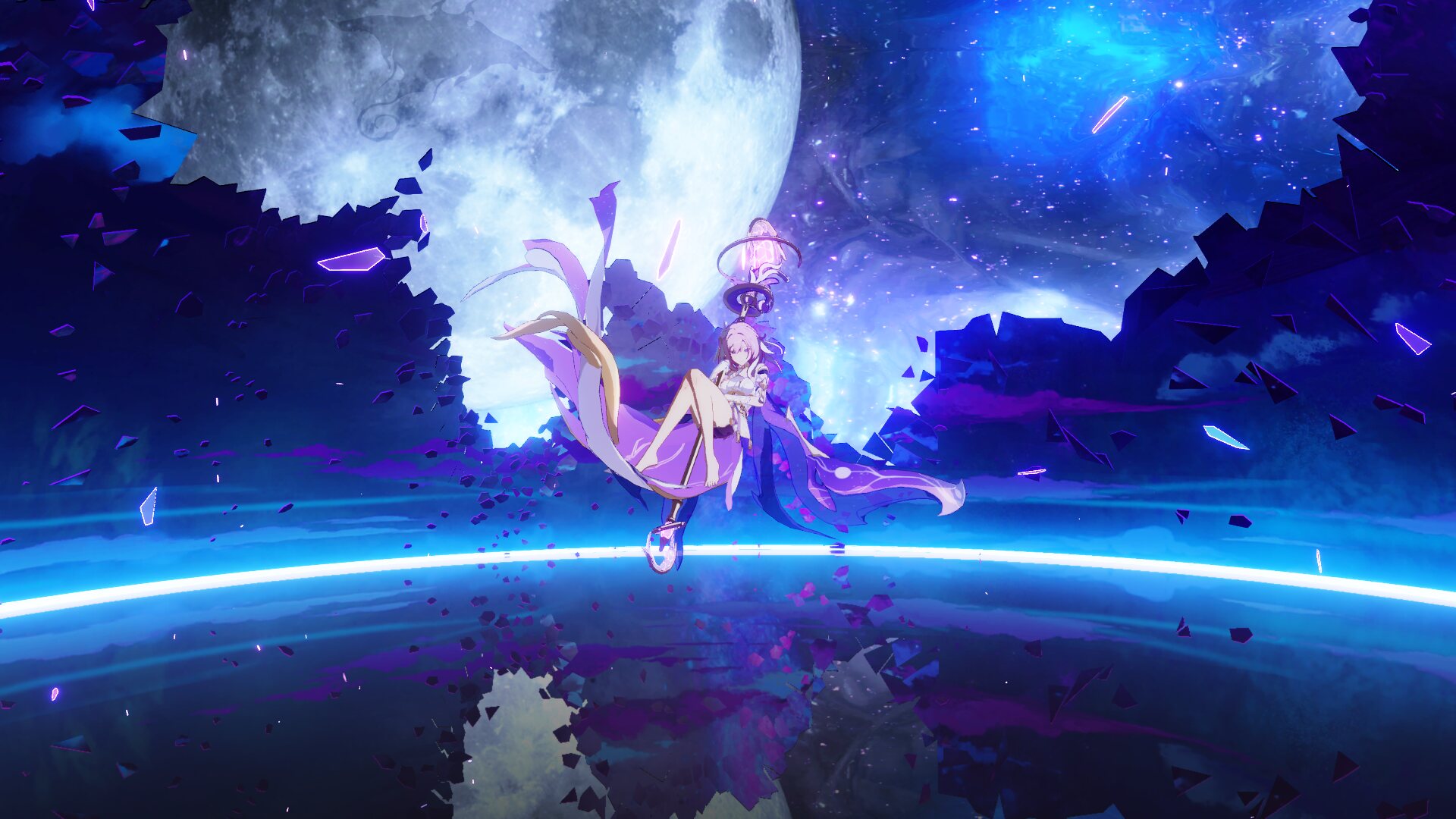 師匠の必殺技月を背にポーズしてるとこで停止するとエフェクトだけは動いててメチャクチャカッコいいし美しい