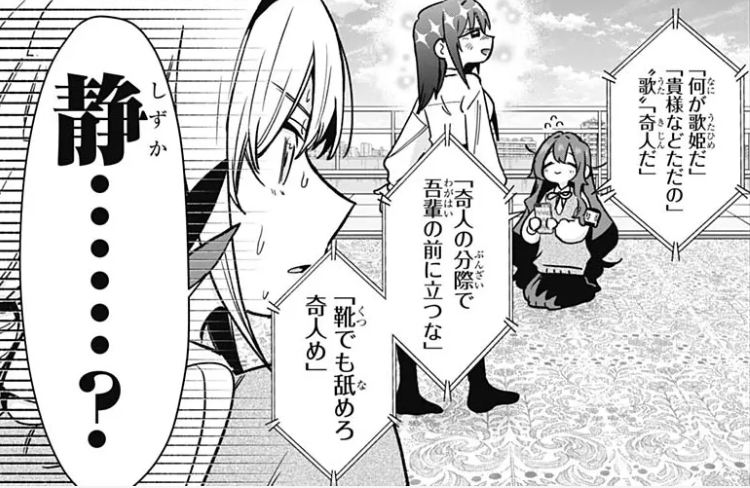 前半部分はまあ無くもなさそうな台詞だけど、奇人の分際で〜と靴でも舐めろ〜は一纏まりの台詞なのが余計にカオスなシチュエーションだな…。ドMキャラを言葉責めしてる以外のシチュが思いつかない。