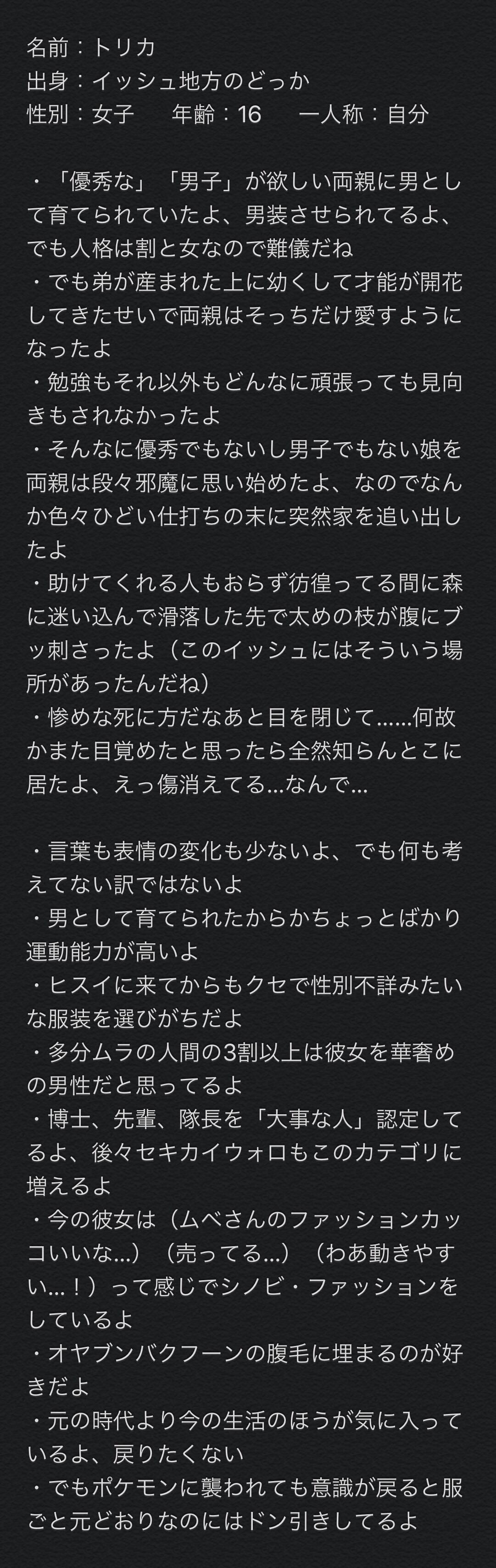 若干の自己投影を混ぜ込んだだけのポケモン世界一般人って時点で無理あるんよぉ - 11歴史好きな妹22/03/20(日) 00:15:49