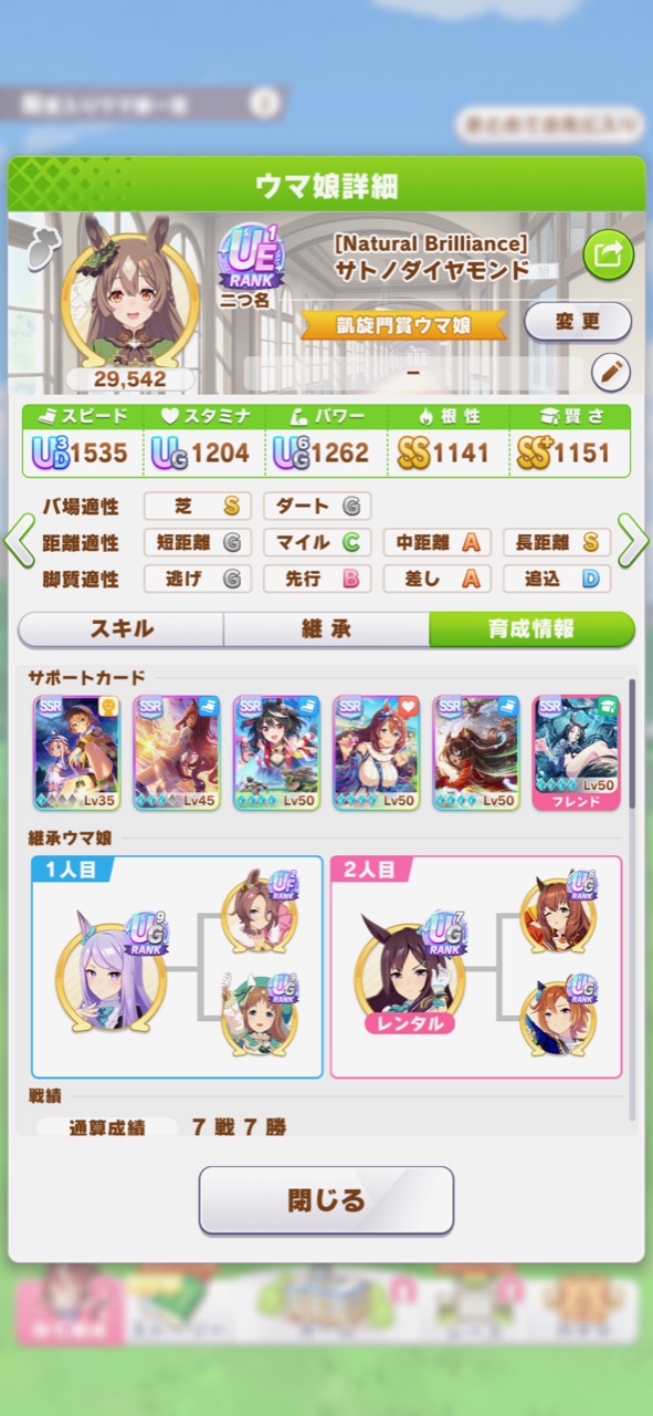 スタミナが長距離以外の編成から抜けがちで根性がほぼ確実に1枚入る時代になるとは当時の自分に言っても信じないだろうな