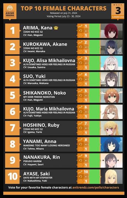 あくまで2024年放映アニメのキャラでのランキングだし、こんなもんじゃね?