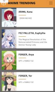 Girl of the Year Nominees: Anime Trending Awards 2024The Girl of the Year category recognizes female characters who have played important roles in their series and have been well-received by audiences. These characters are chosen based on their rankings in the Anime Trending Top 10 Female Charts, and the top 5 female characters from each season are selected as nominees. The Anime Trending […]anitrendz.net【順位&得票数】