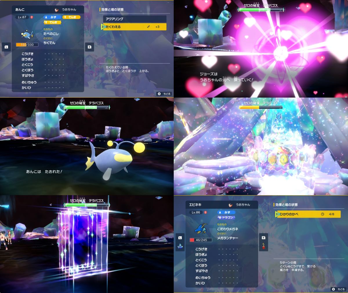 1:メノクラゲ 2:ドククラゲ 3:タッツー 4:シードラ 5:ハギギシリ 6:マケンカニ 7:ケケンカニ 8:ヤドン(ガラル)