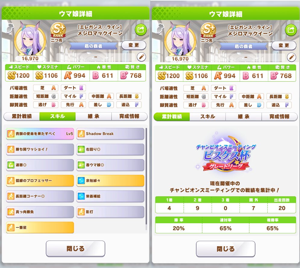 オグリ、グラス、ライアンという以下にも始めたばかりでキャラ揃ってないって感じの人と当たったけど、それでもA+あったわ…