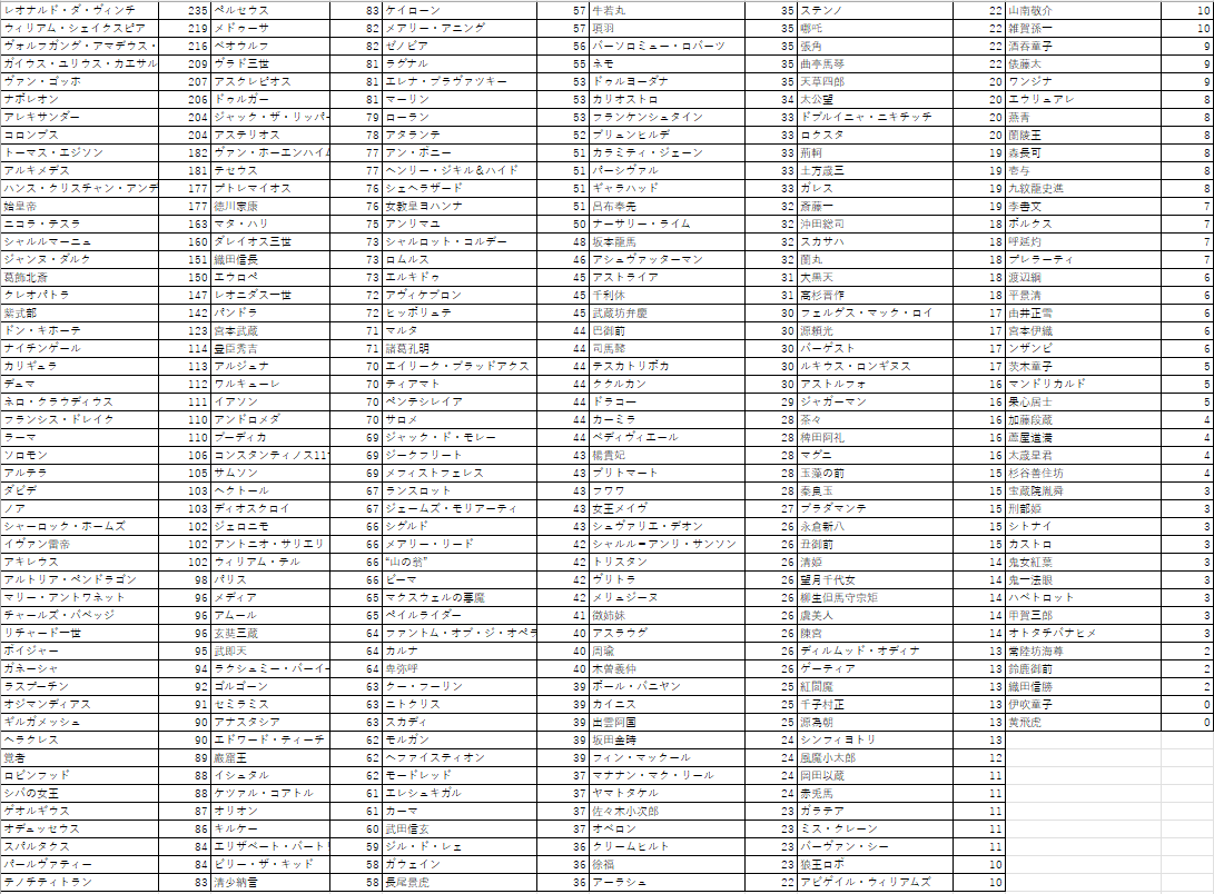 これって「物語・神話の英雄」と「史実の偉人」で別カウントなんじゃ?