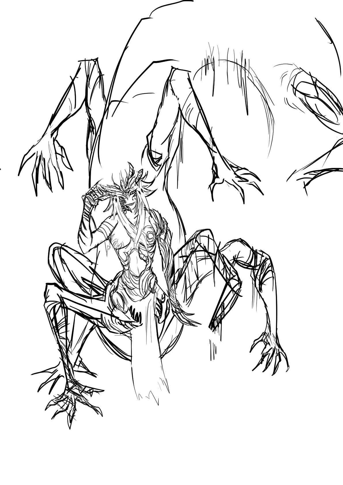 肌は褐色で鱗と髪はエメラルド色 おめめはルビーやガーネットに似たぎらついた赤色をしている