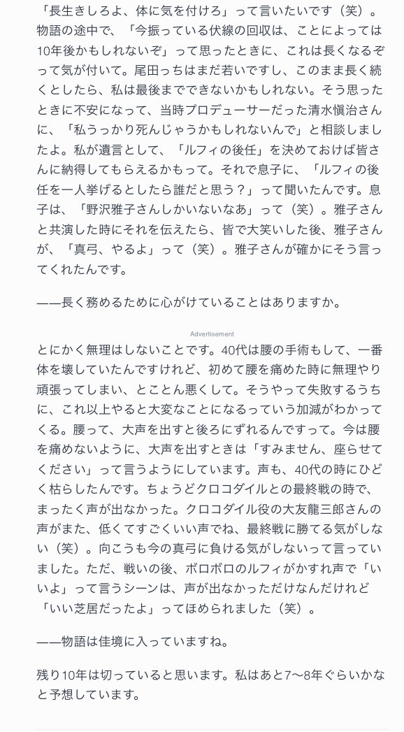 なんかもうこのインタビューで語られてる尾田っちと矢尾さんのやり取りとかほんとアニキー!!って感じだよな、くっそ仲の良い兄貴分に知らない場所連れ回してもらってるみたいな印象受けて微笑ましくて好き