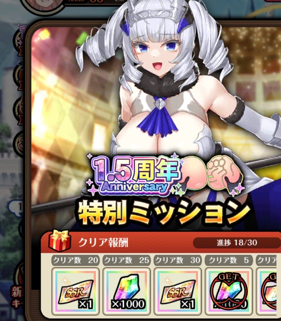 1.5周年の特別ミッションをやり忘れて石1000個とssr確定チケットの回収を忘れてたのが俺…! - 21二次元好きの匿名さん25/03/26(水) 23:55:21