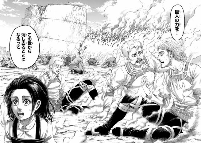 地鳴らし以外の未来が欲しくて3年間探し続けたのに、自分の破壊衝動から地鳴らしを本能では望んでいたこと、自分の中の悪魔を突きつけられたことにより逃げ道もふさがれたのはほんま可哀想やでえ……