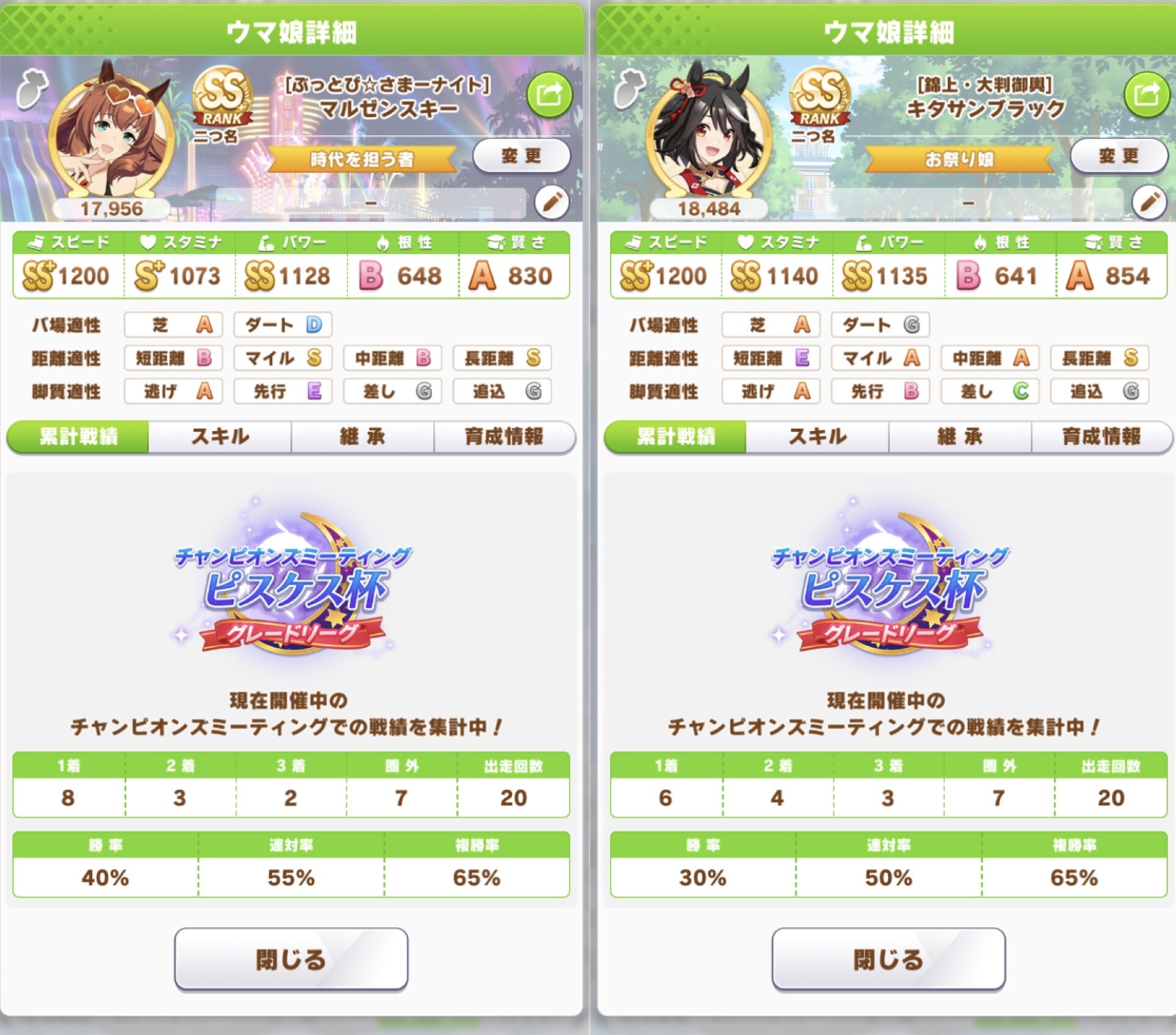 勝率50%くらいだけど、負ける時の相手は逃げキタサン率が高い気がする
