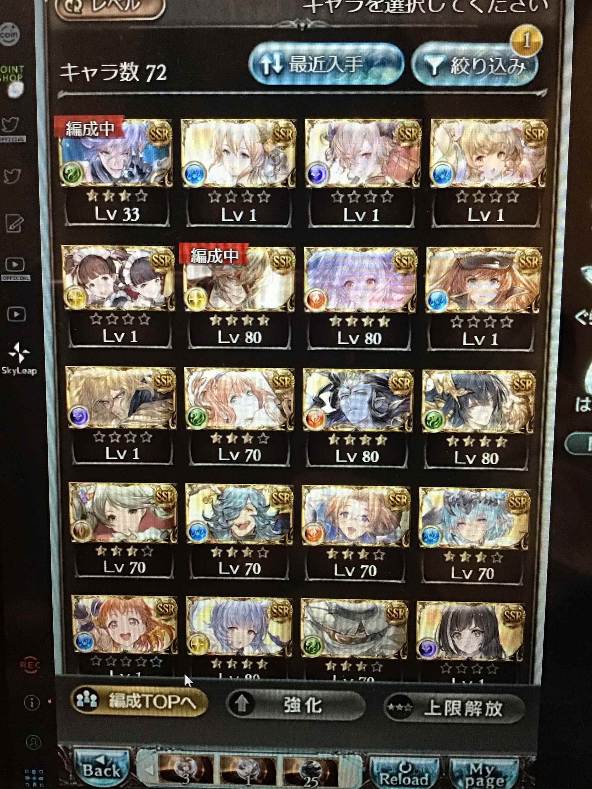 今日のガチャピン分合わせて天井してSSRの個数は18個
