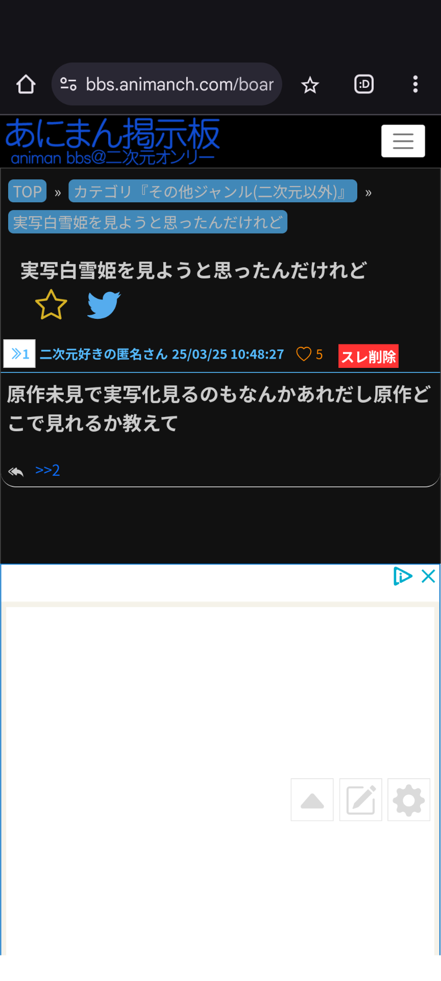 - 1白雪姫見る人◆X/CbscPDZzZ425/03/30(日) 15:49:10