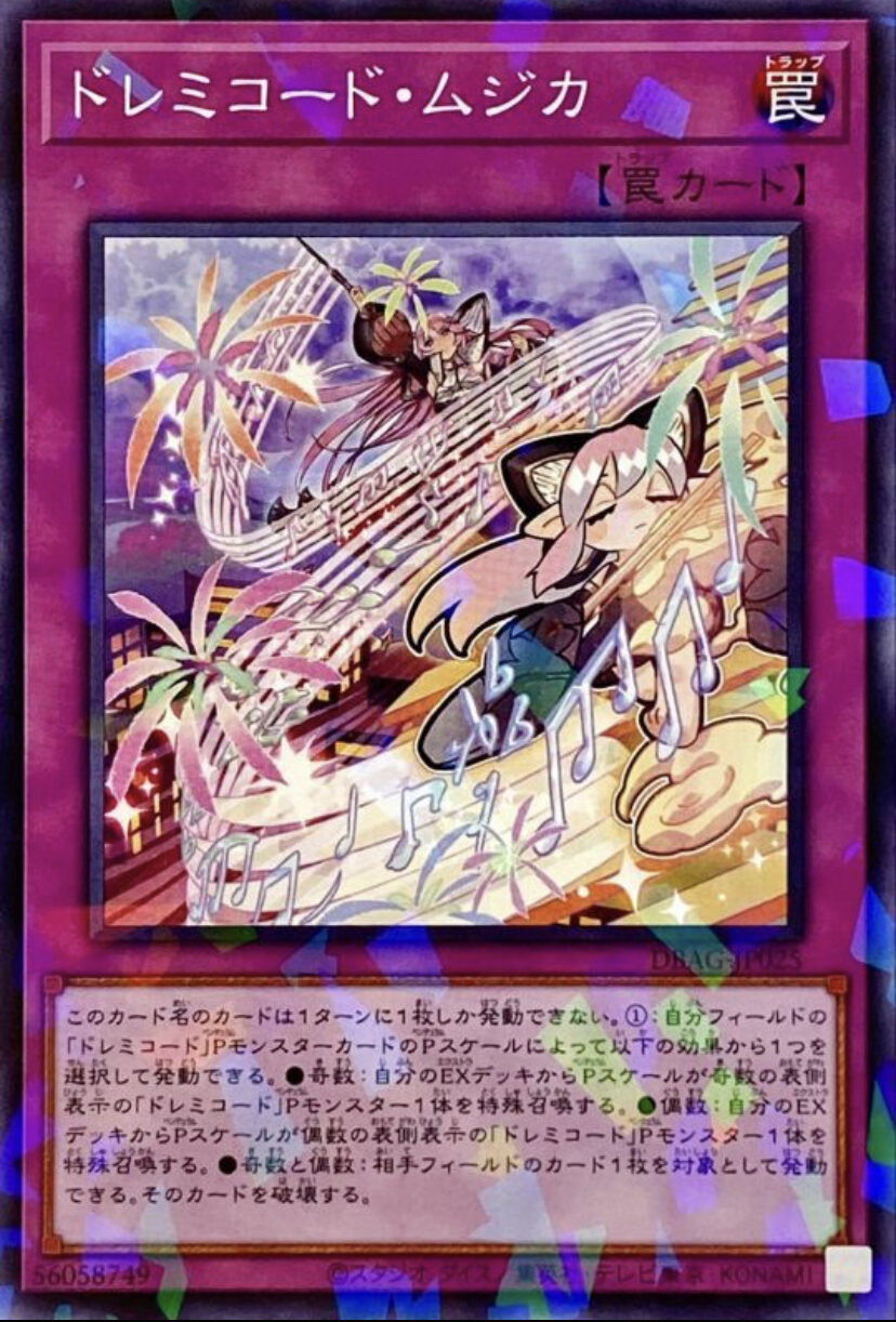 ドレミコードに搭載されてるギミックがP召喚以降のものだから、初動が弱いのは別に構わないし、それこそ初動を補強するために汎用を突っ込むことは全然許容できるのよ。だからこそ、打点が出るフィニッシャーとか、相手の動きを止められる妨害カードが欲しいんだ