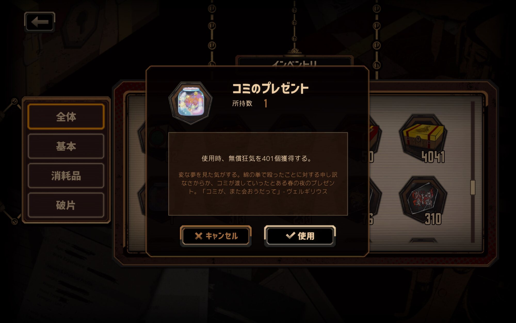401狂気をプレゼントしてくれるのは有難い反面…このアイテムを消費するのはもったいないという思いに駆られる!
