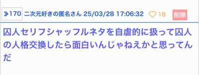 - 18二次元好きの匿名さん25/04/01(火) 00:41:49