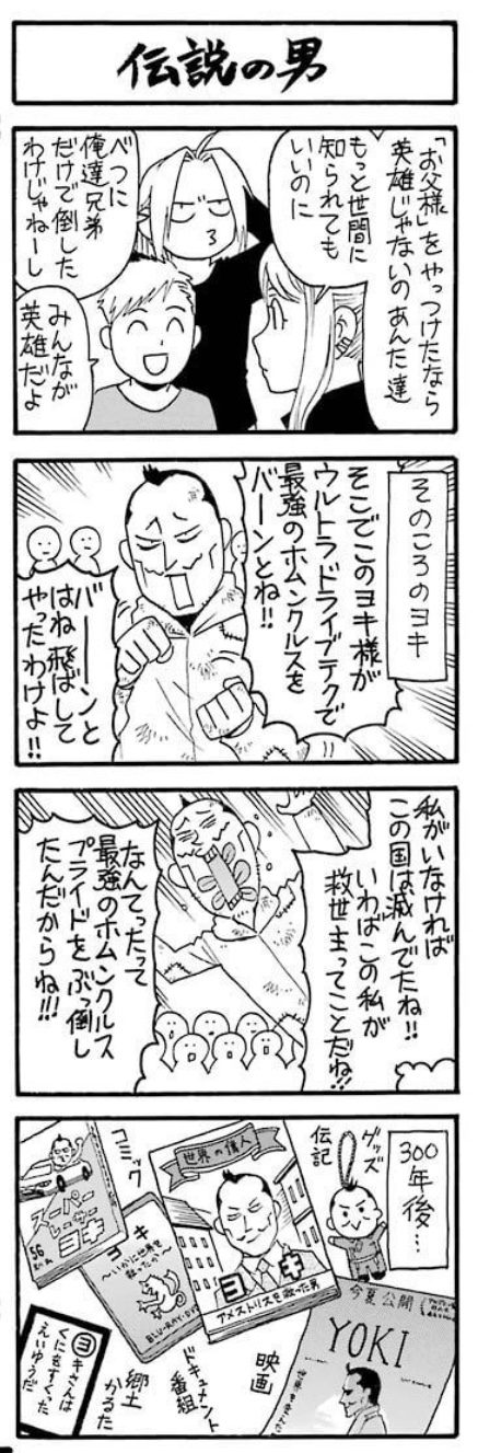 ホムンクルスのアレやらコレやらがどの程度明るみに出てるかで変わって来そう、特にブラッドレイの評価