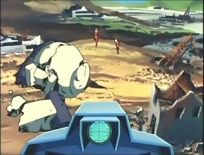 ガンタンクⅡとの戦いを終え再び歩き出すジョンとズゴック