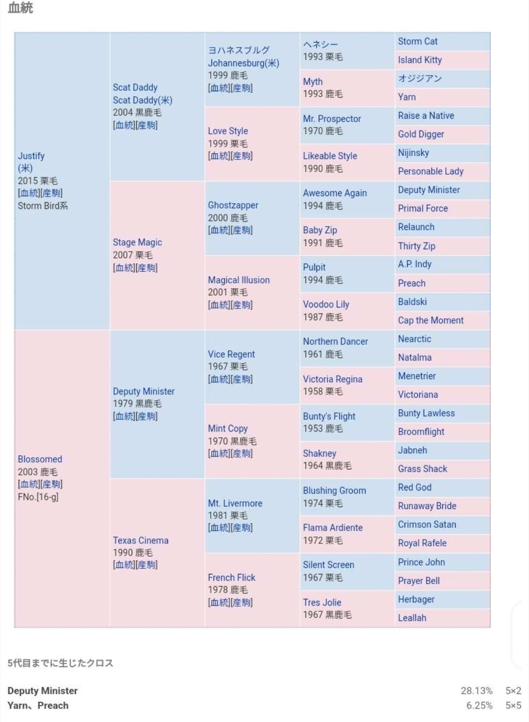 トニービンやらブライアンズタイムやら父系孫がいまいち良くないけど一度母を挟むといい仕事したりするの面白いよね