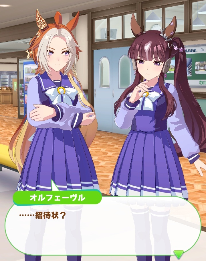 そういや育成シナリオでもトレーナー相手に「新年会の招待状まだ?」みたいな反応を見せていたから、気を許している人物に招かれるのは嫌いじゃないどころか好きそうなんだよね