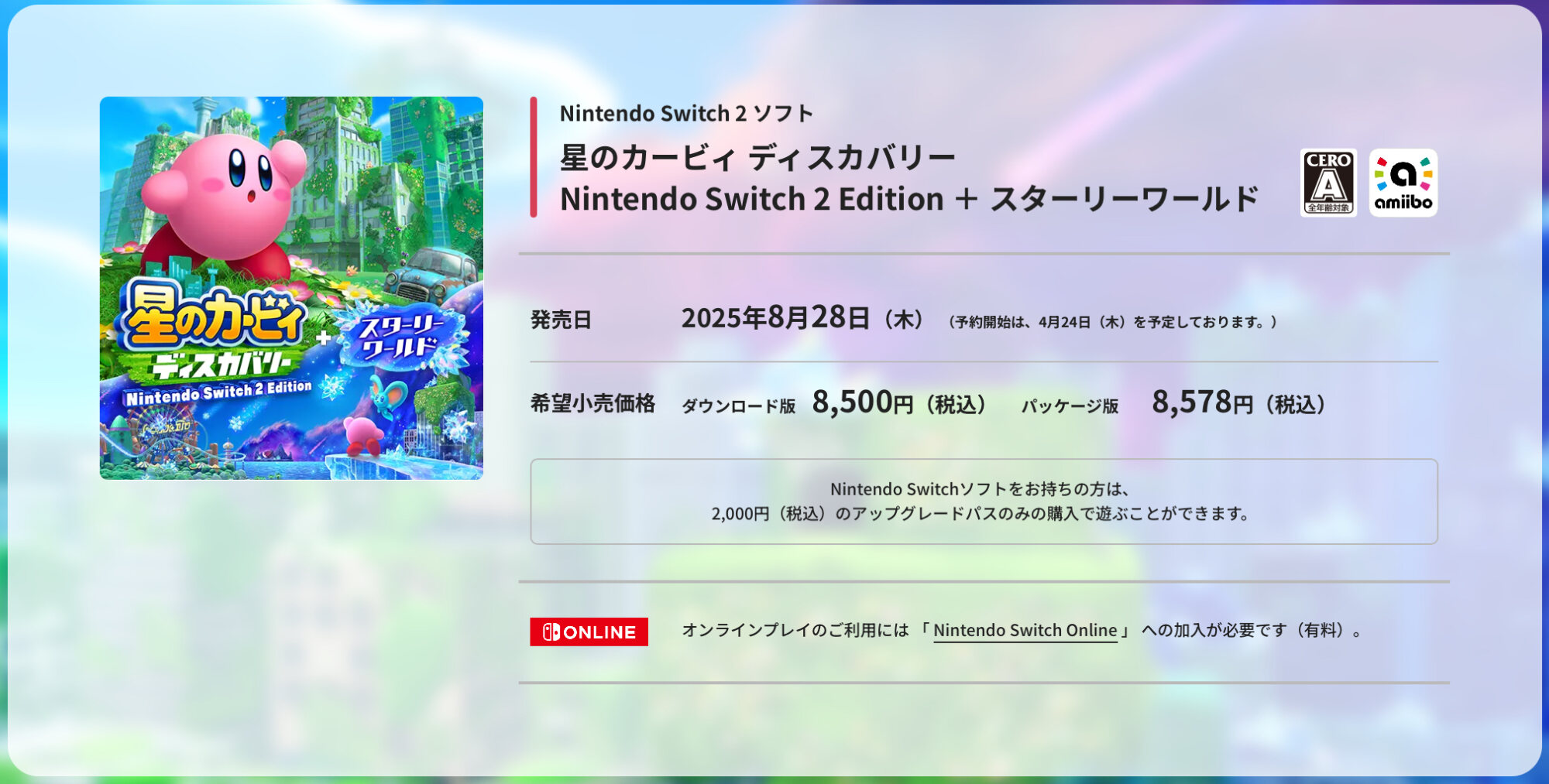 値段的にはSwitch2エディションもSwitch版+アップグレードパスも変わらないのよな