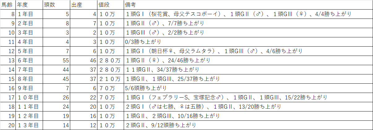 繁殖成績のダイスって現役成績以上に変なハジケ方するよな……