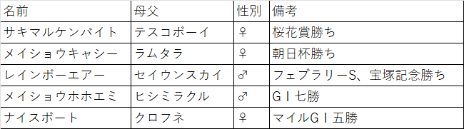 メイショウホホエミとナイスボートは2022年生まれ?