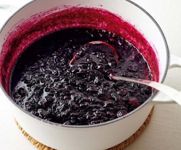 ジャム入れてるならかかってるように見えるのは横たわった肉で粒々が煮え残ったブルーベリーの残骸なんじゃないか