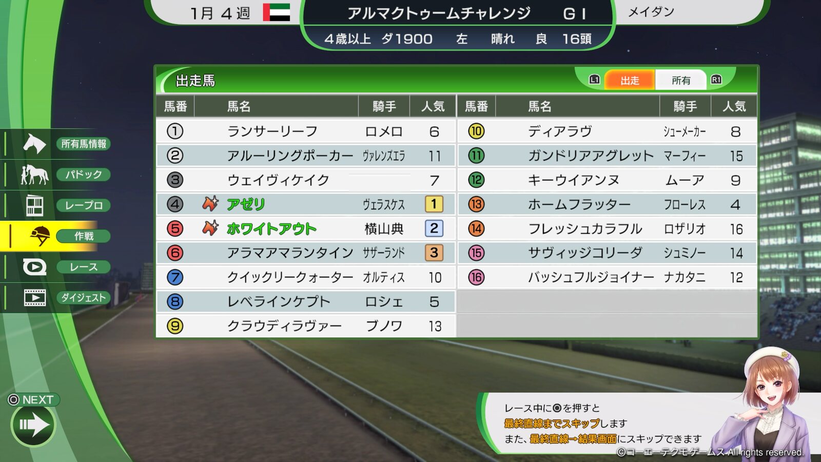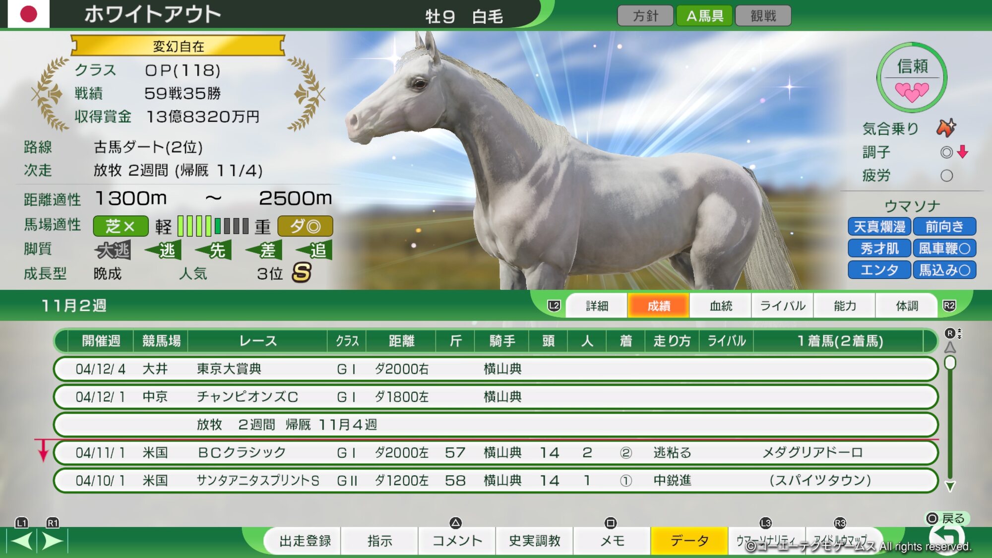 ウイポ架空白毛スレ(ホワイトアウト物語)パート2|あにまん掲示板現時点でのホワイトアウト号・5戦3勝2着2回・主な勝ち鞍:伏竜S・主戦騎手は未だ固定なし・現在ユニコーンSに向けて調整中bbs.animanch.comパート3