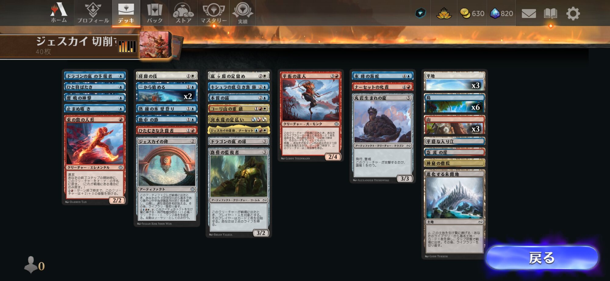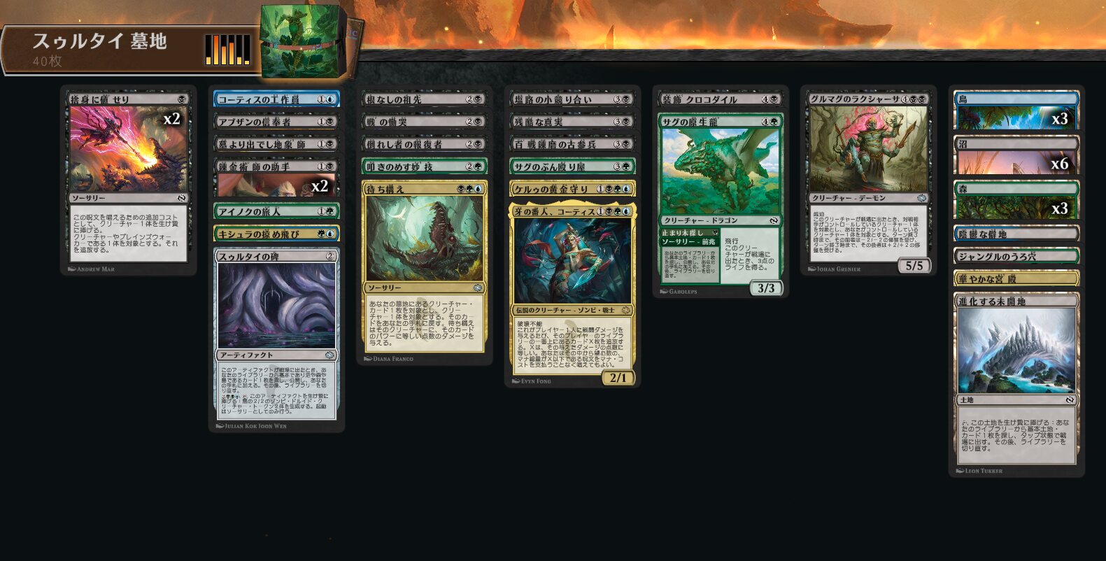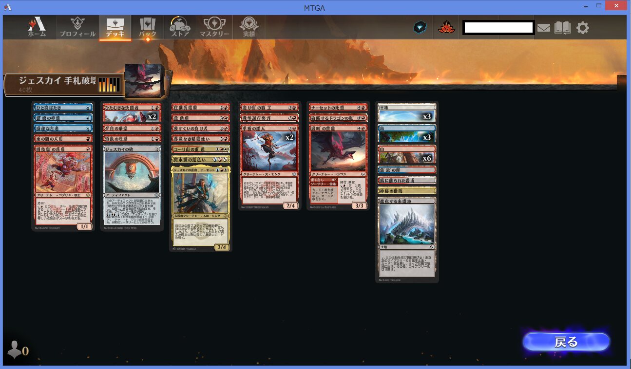 土地サーチと3色土地入ってるとはいえ赤偏重になって白青出せないみたいな土地事故負けこそしたとはいえ疾風達成でアドバンテージ稼ぐのは楽しかった