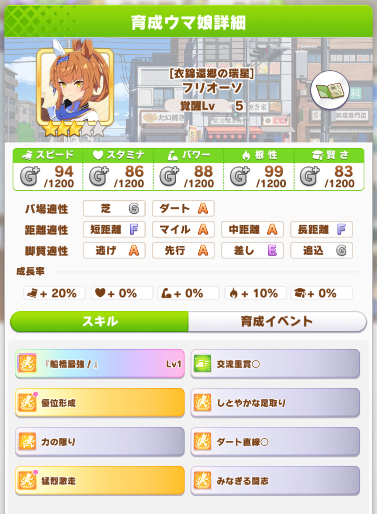 本能の解放に比べれば激走はだいぶ扱い使いやすい。終盤速度欲しい逃げには好材料