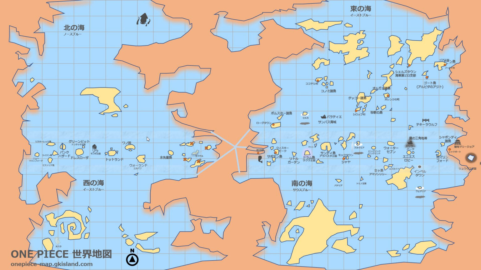 この地図の面積的にはグランドラインより東の海の方が大きいんだな