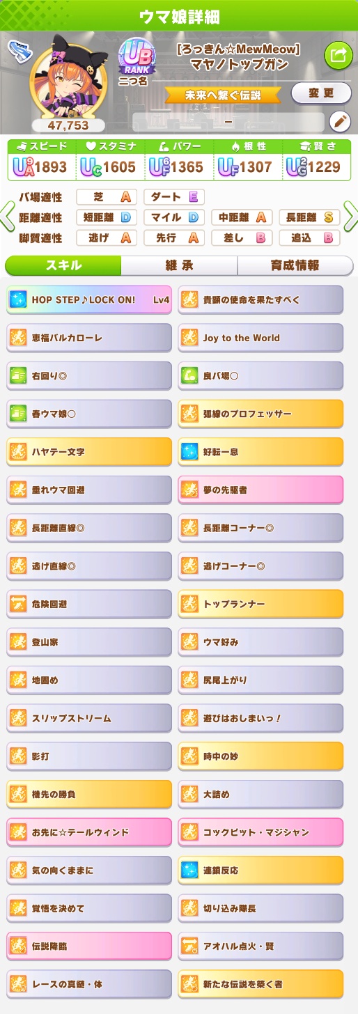 この育成の時は星3の100上昇を2つ取っちゃったけど序盤心得の引きがあまりに弱くて休み時発動の奴よりはマシかって思いながら取っただけだから正直そこは参考にしないで良いと思う