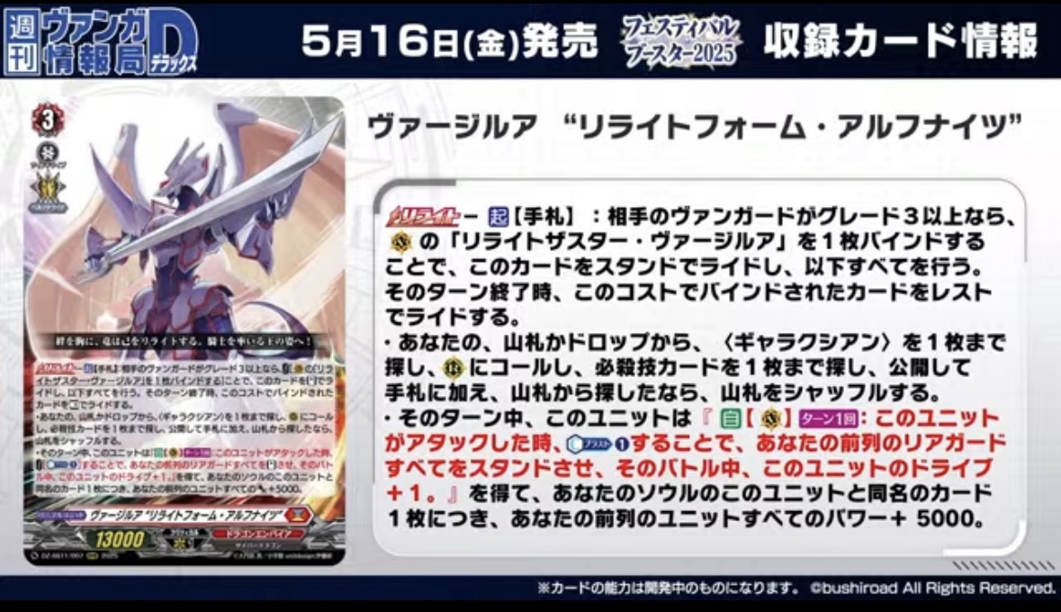 戦場を渦巻く滅却の業火 | 「カードファイト!! ヴァンガード」 TCG公式サイトブシロードによる超大作オリジナルカードゲーム「カードファイト!! ヴァンガード」の公式サイト。戦場を渦巻く滅却の業火のページcf-vanguard.com - 32二次元好きの匿名さん25/04/13(日) 21:18:54