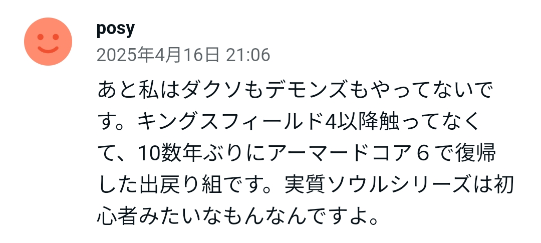 この記事書いてるのに言うならホントか知らんがフロムゲーやって来たとか言う何の役にも立たんプライドのせいやろ