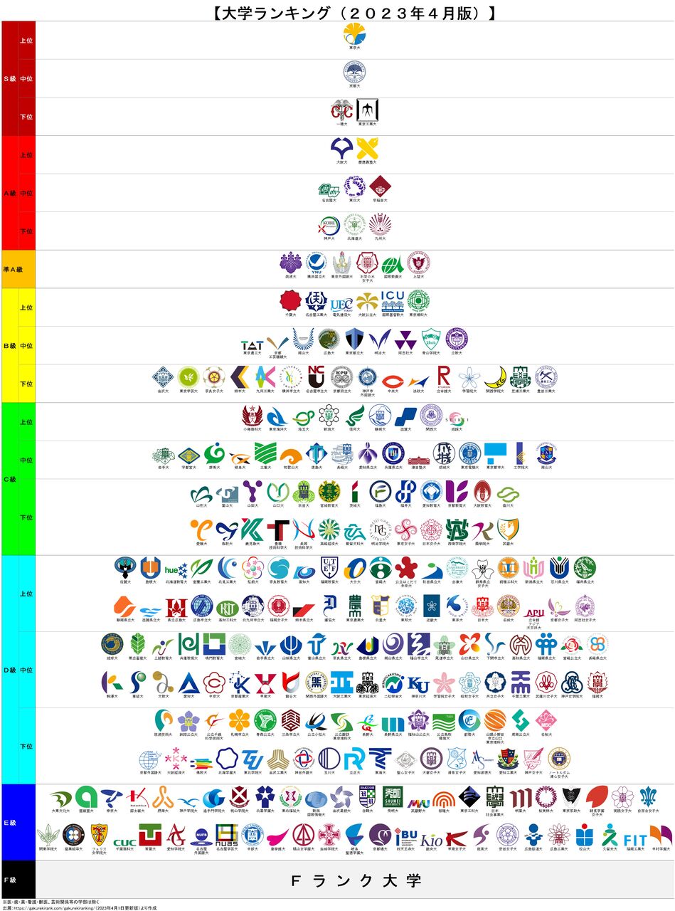大学のランクはdでも俺の通ってる学科はほぼFなんだよなぁ