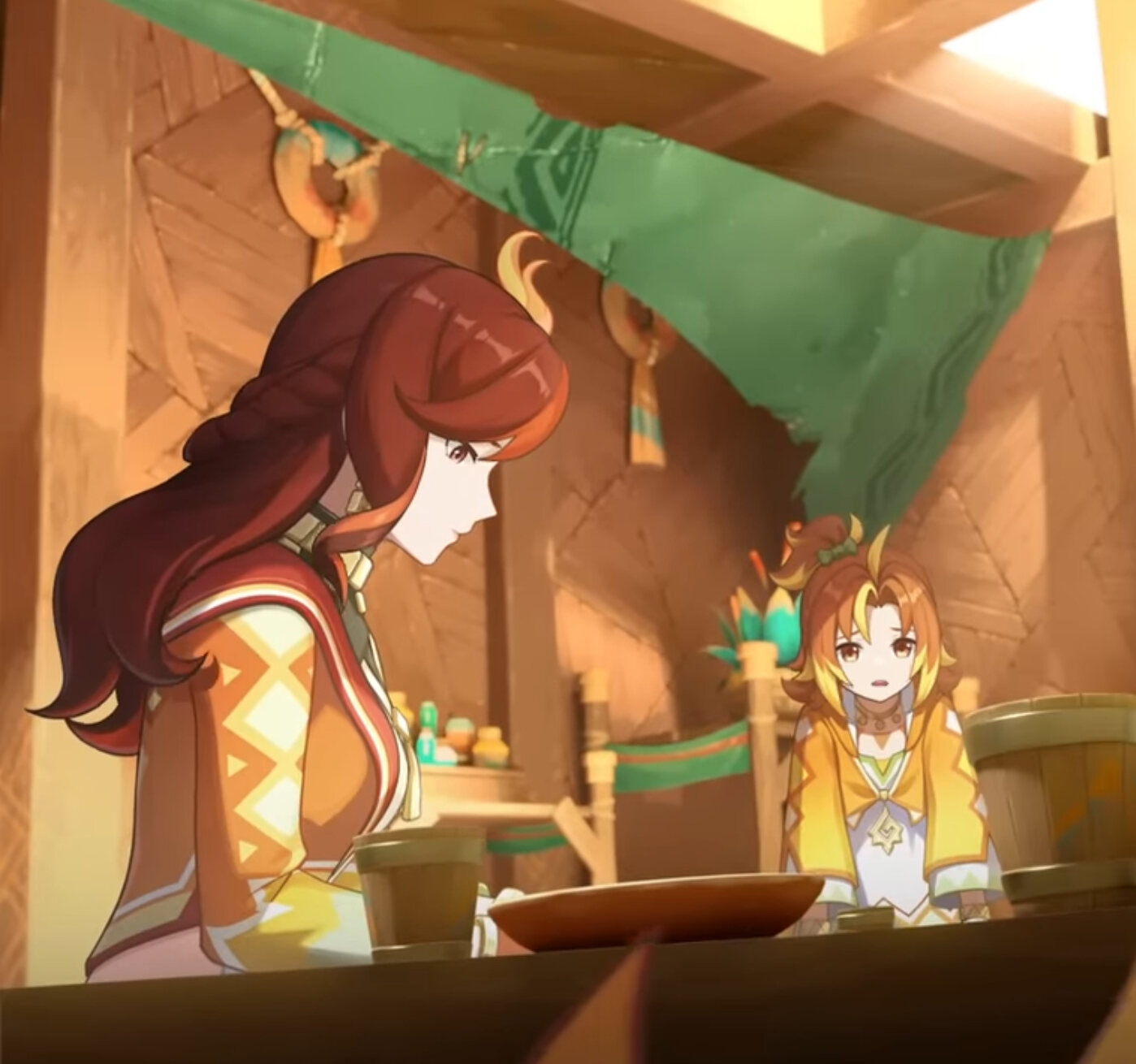 「……あぁ、彼女の未来を見据え切り開く力を秘めた瞳、生糸のように風に靡く真紅の髪、夜明けを告げる明光のように響く声、深淵の中に沈もうと決して輝きを失わぬ太陽の如き魂。その全てを愛している…!だが、もはや全てが手遅れだ。俺は夜神の国の薪としてこの身を捧げた。彼女と触れ合うことはもはや叶わん。それに、彼女の命とこれからのナタの民の命全てを救えたのだ、悔いなどあろうはずがない。」