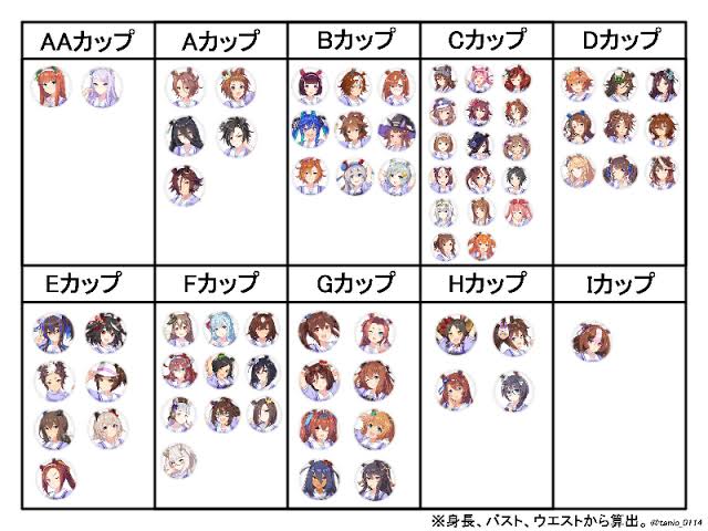 もっと言えば現実の平均値により近いアンダー70を採用しなかったのが計算上胸が抉れる子が数人いたためみたいだし、サイレンススズカに至ってはアンダー65基準でも計算上胸の体積がマイナスになっていてこの時点で現実離れはしている