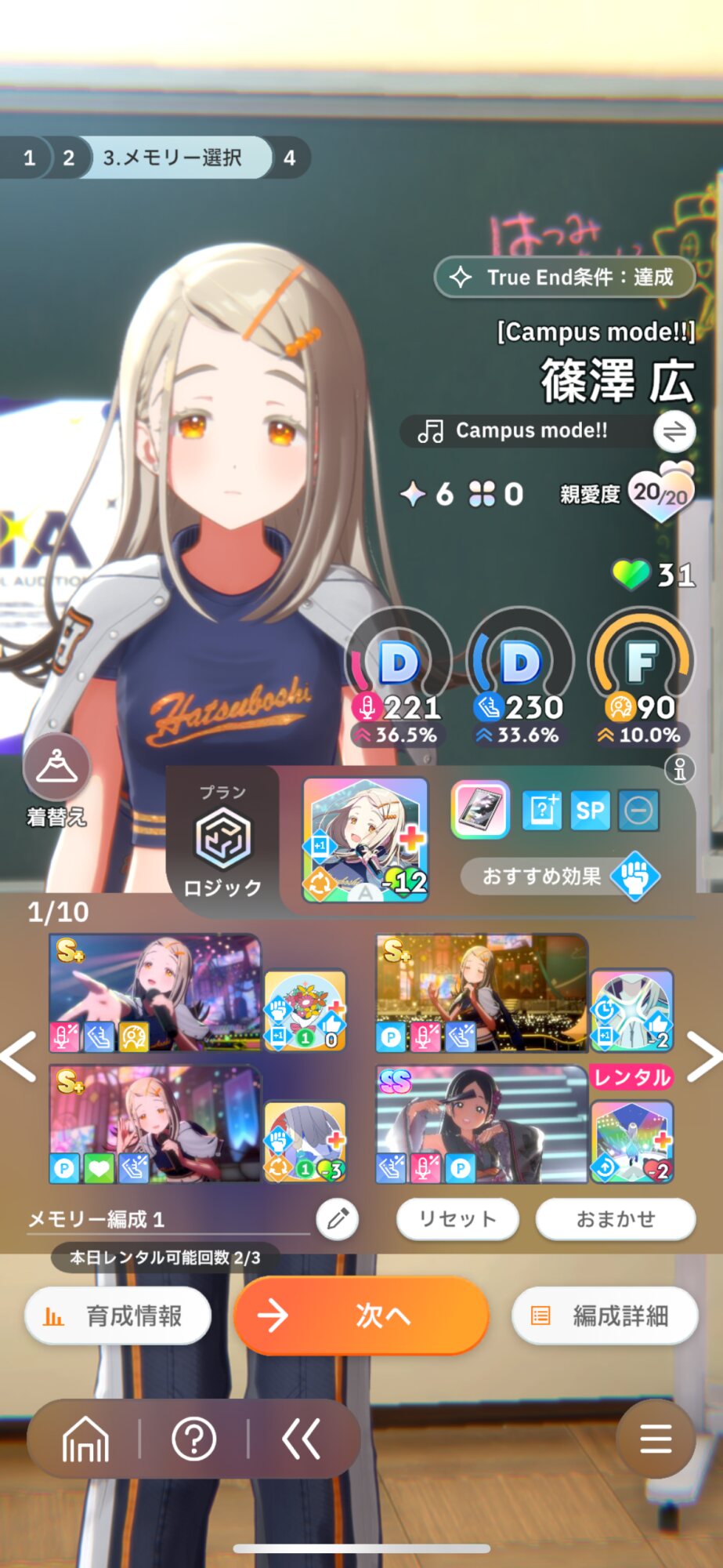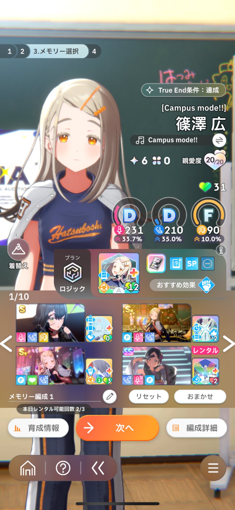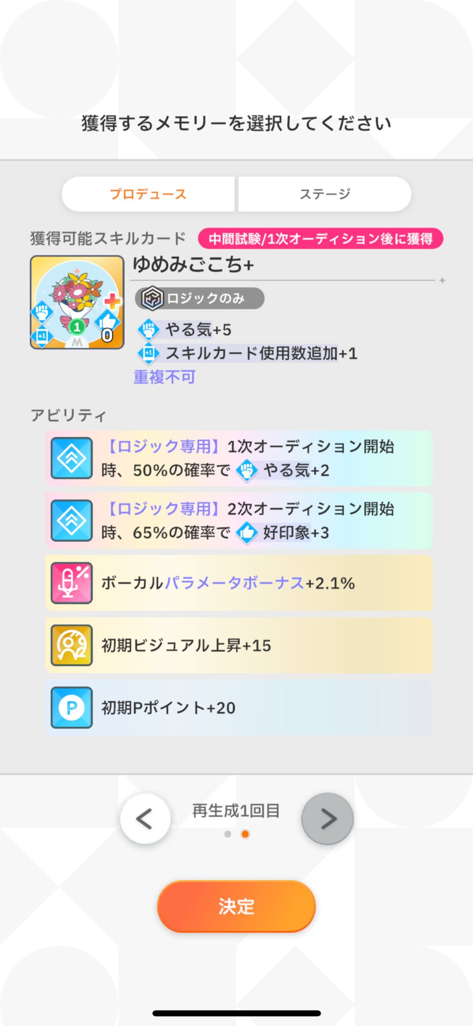 リロール回数があるなら、メンタルや好印象選んでもいいけど、少ないならやる気選択ですね