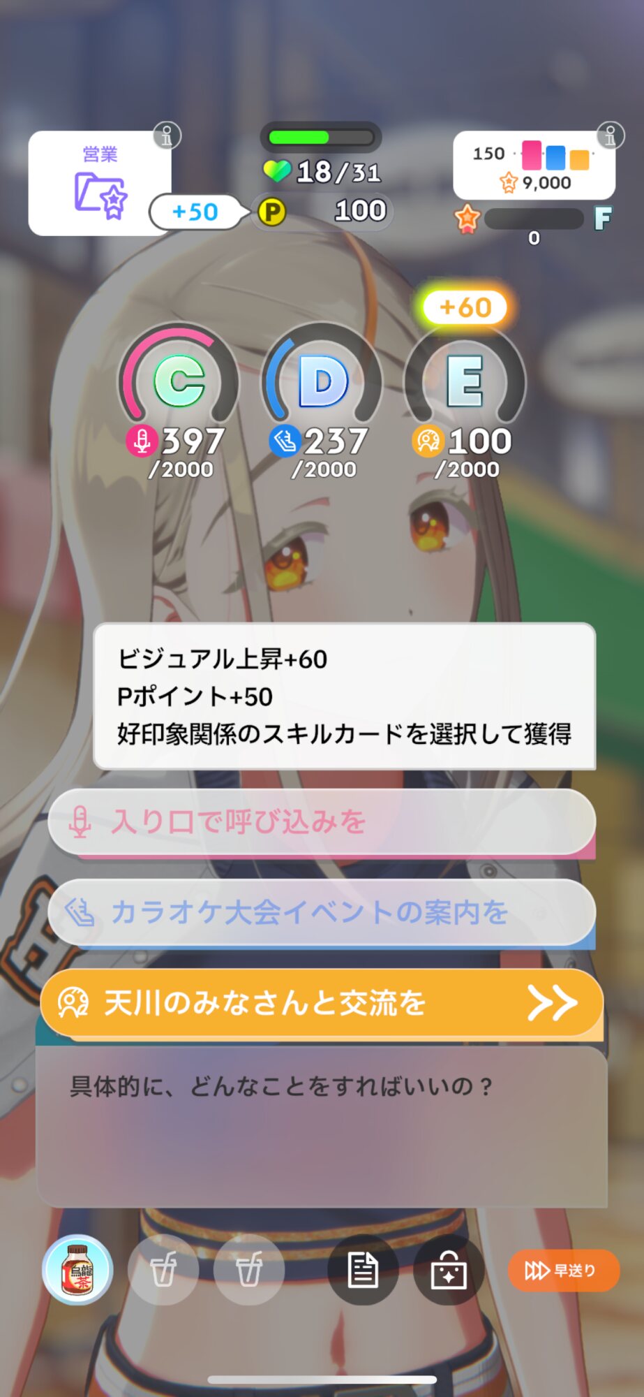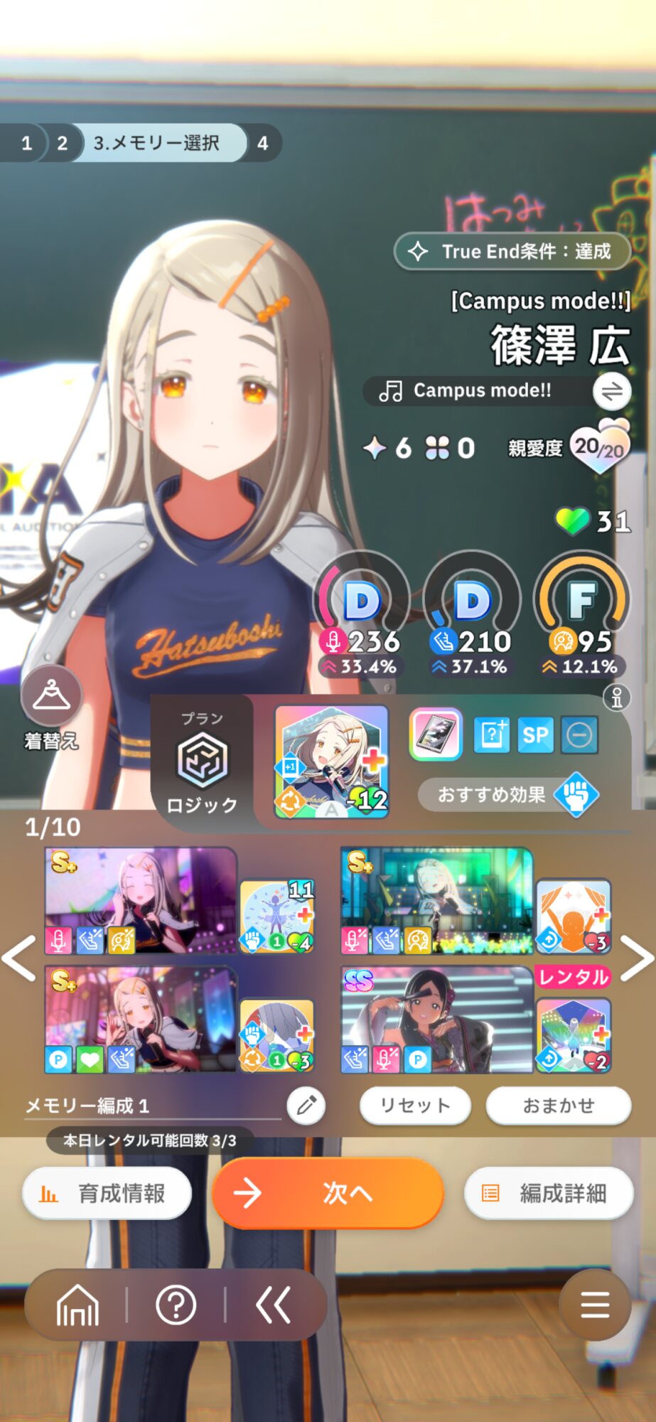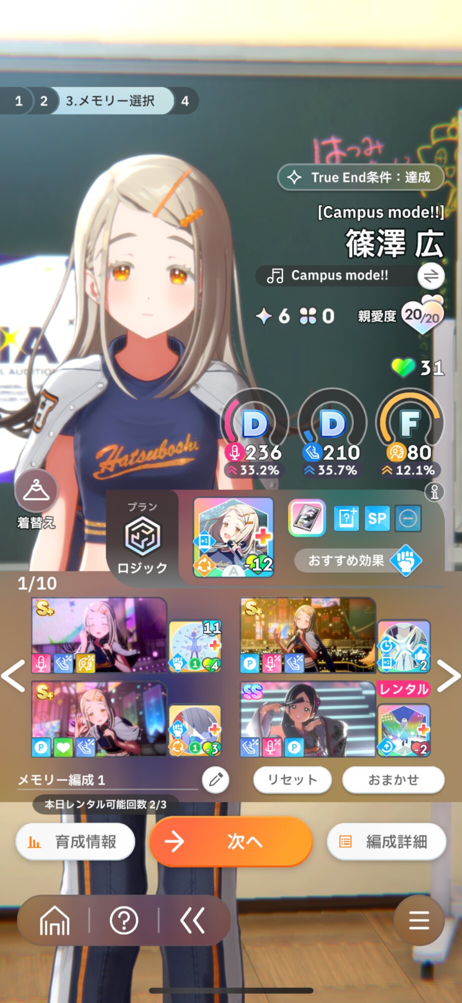 リロール回数があるなら、メンタルや好印象選んでもいいけど、少ないならやる気選択ですね